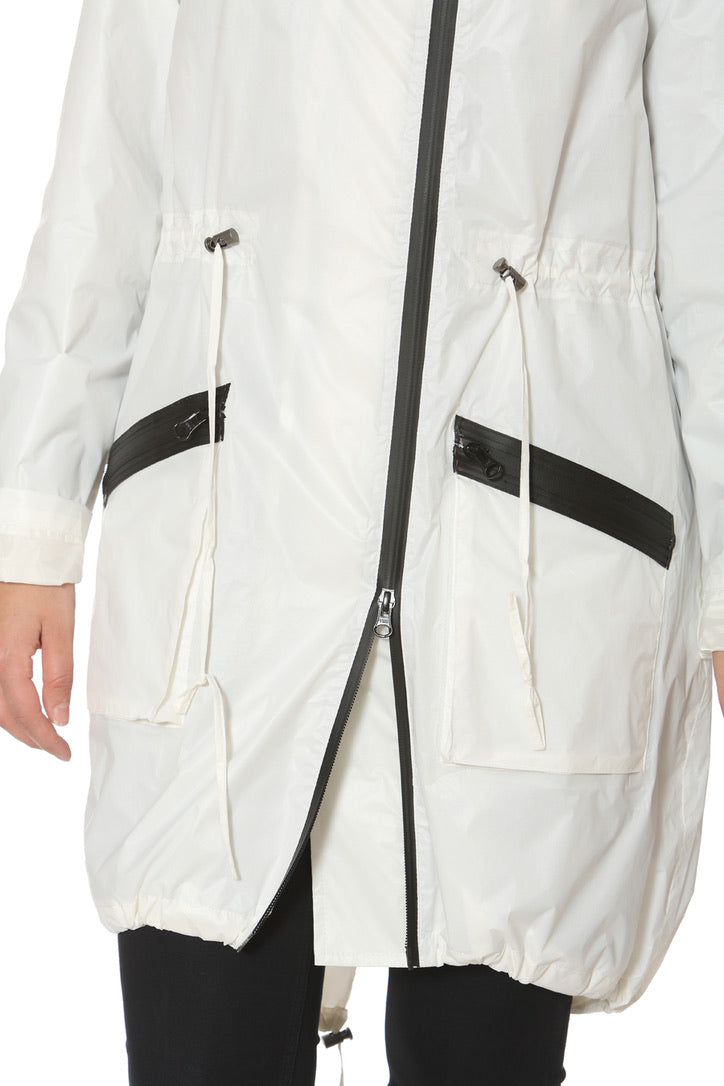 style Sabrina - A rain coat that remains 100 percent water proof in the most harsh weather conditions. It is suitable for traveling and can be easily packed into your bag. A windbreaker feeling fabric. Lined.